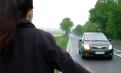 German Blonde Hitchhiker Teenie lure to Fuck in Car by Stranger