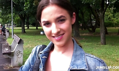 Caucasian teenie brunette has hooked up with a black guy just to feel his jizz-shotgun inside her