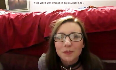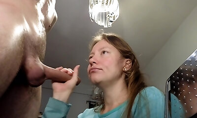 Warm spunk starving brunette opens her mouth to be fed with sperm
