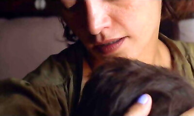 घुंघराले सौतेली बहिन ने मुझे उसके पारदर्शी अधोवस्त्र और रसदार स्तन के साथ बहकाया