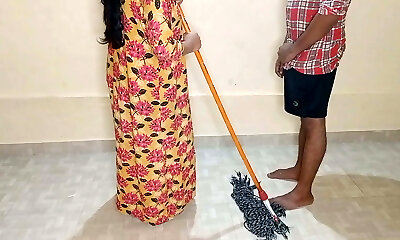 (Desi Nakurni Ko Jabardast Choda malik ke step beta) Indian Maid Fucked while sweeping his Guest Room - Big Boobs & Monstrous Bum 35yo