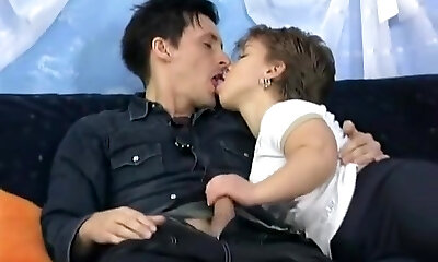 Low budget porn of chubby girls with uber-cute boobies getting fucked doggystyle by nerd