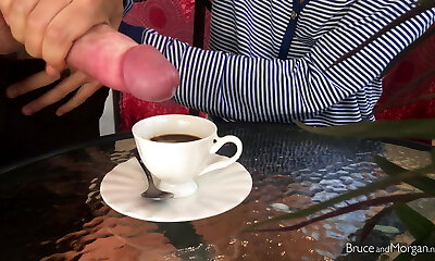 A urinate and cum breakfast ritual
