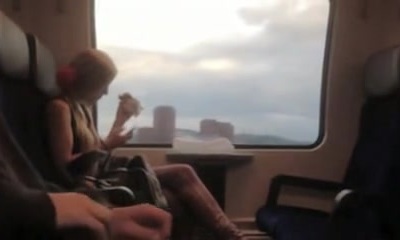 Sex-positive Russian brunette got some cum on her face by a stranger in a train