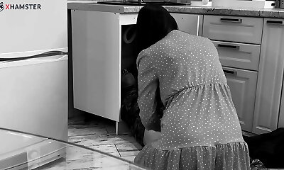 Stepmom is stuck under the ottoman