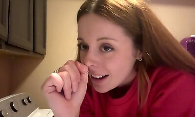 Cute teenie stepsister Lily Adams gives her head and takes hard beefstick in wet yummy hole