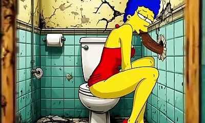 The Simpsons Porn Parody: Sexy Cheating Wifey Marge Lets a Black Dude Tear Up Her In The Public Toilet