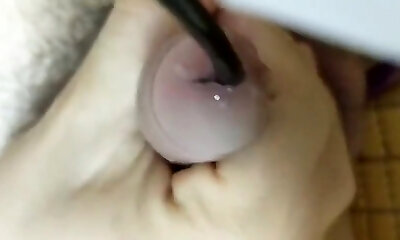 Close-up urethral sounding with FULL Figure Orgasm and post Insertion