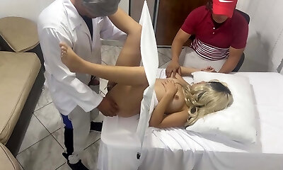Pervert Poses as a Gynecologist Doctor to Fuck the Beautiful Wife Next to Her Dumb Hubby in an Erotic Medical Consultation