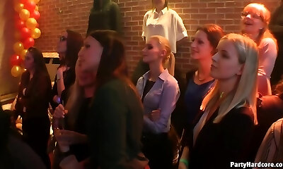 Horny girls are having gang sex during the soiree and enjoying every second of it