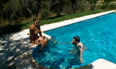 Gorgeous Izzy gets her tight blond snatch pummeled by the pool